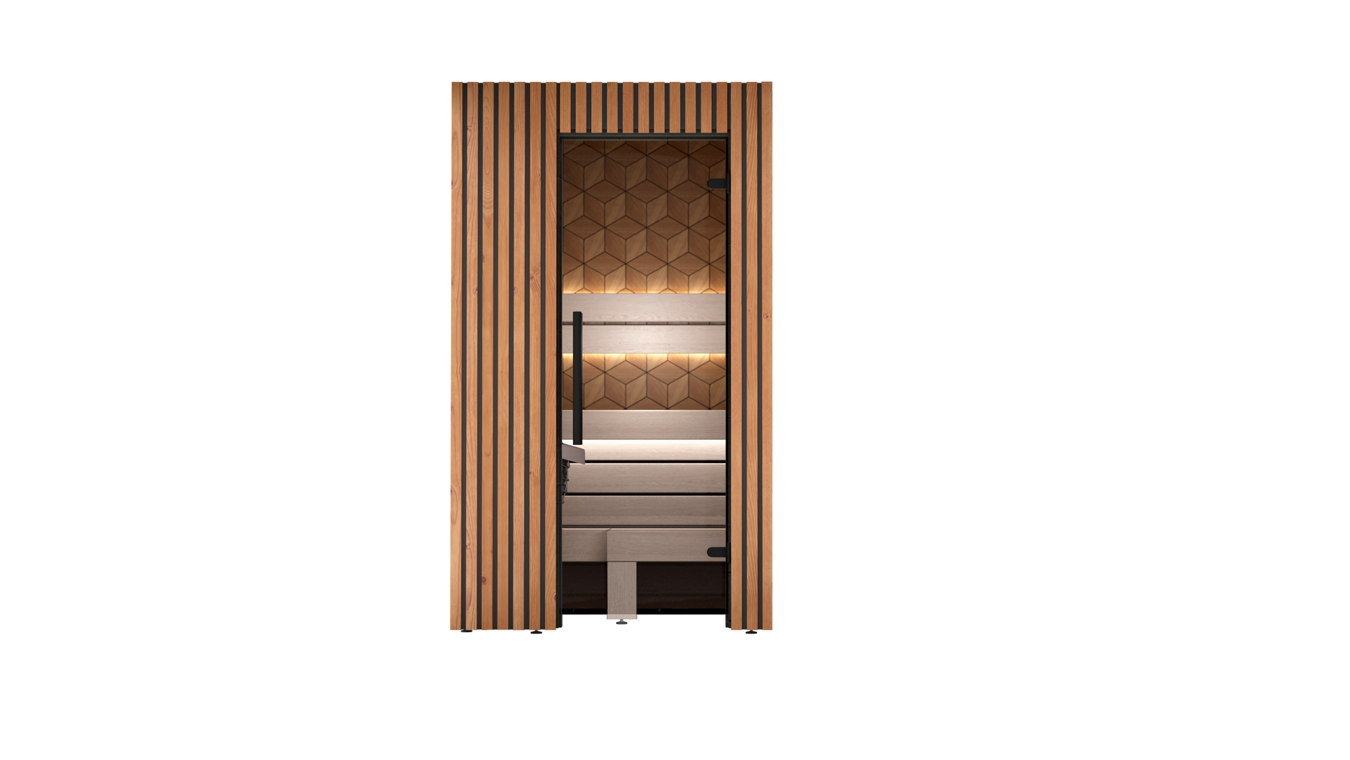 A compact one-person indoor sauna for daily rituals in tight spaces. Fits apartments and ensuite wellness corners.