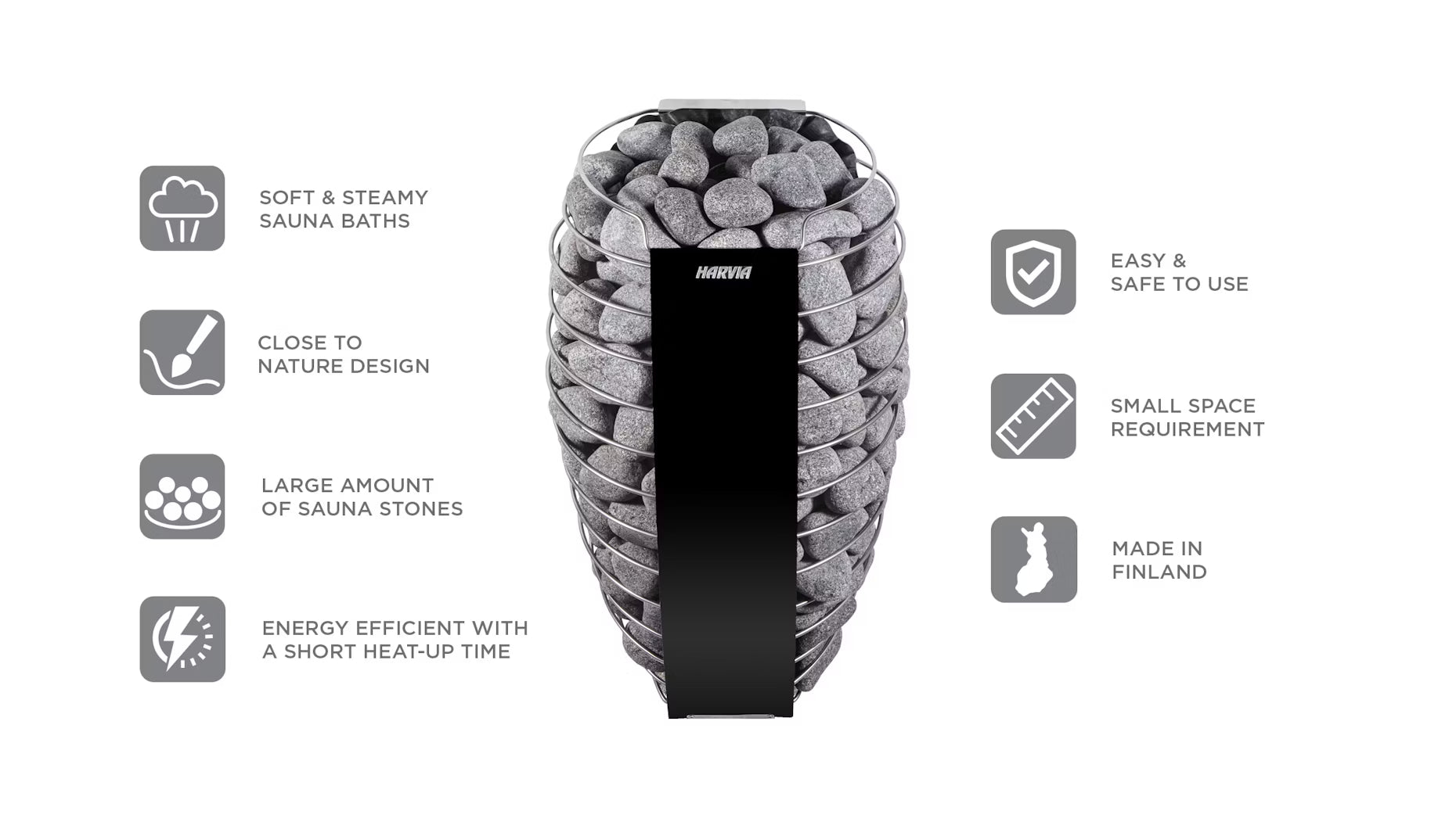 A compact electric sauna heater that combines mystique and beauty in one package. Harvia Spirit heaters bring the spirit of löyly to your sauna. Step up to the next level of sauna experience with Harvia Spirit.