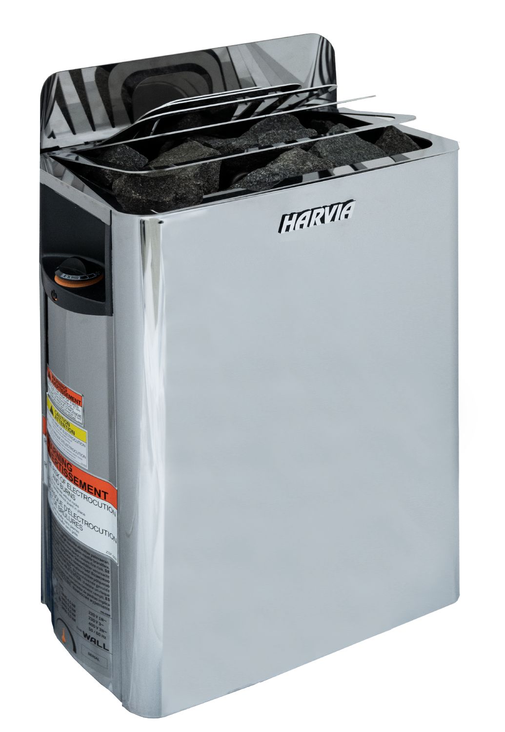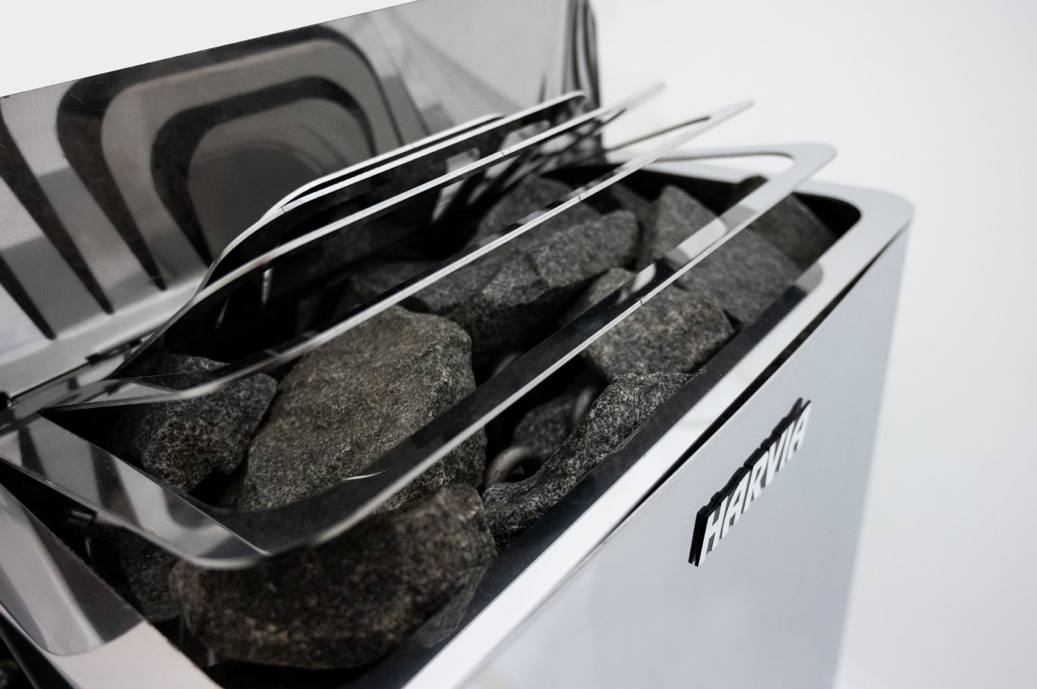 Harvia The Wall electric heater for medium-sized sauna rooms combines minimalistic Scandinavian design and user-friendly operation with top quality. The Wall is a compact, stylish, and reliable ensemble, that is suitable for various types of sauna interiors. The heater's stylish shiny surface provides a modern touch for your sauna. With the illuminated and easy-to-use control switches you can adjust the heater's temperature and timer to start whenever you need it ready - such as after an exercise session or a workday. The heater can be installed in both left and right-handed directions. The practical form provides more flexibility when designing a sauna interior, for example, The Wall can be integrated in the sauna bench. Long service life is guaranteed by high quality materials and a smart, sturdy structure. Extra-long heating elements will last longer and transfer heat more smoothly to the stones and sauna room. The Wall heater's design allows improved air circulation making the sauna room's temperature more consistent, so that you can enjoy steady warmth. The unique Harvia mounting/wall rack included in the delivery determines the minimum safety distance between the heater and the floor. Installing the heater is quick and easy.